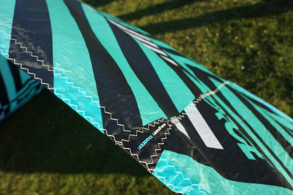 Also, present on the Wow V2 is Liquid Forces Synergy Strut technology. Here, rather than simply sewing the strut onto the canopy which can cause huge stress in the stitching, Liquid Force have made the strut in 2 parts and actually incorporated it into the kite structure, resulting is a much tougher kite and less stress on both the canopy and the strut.