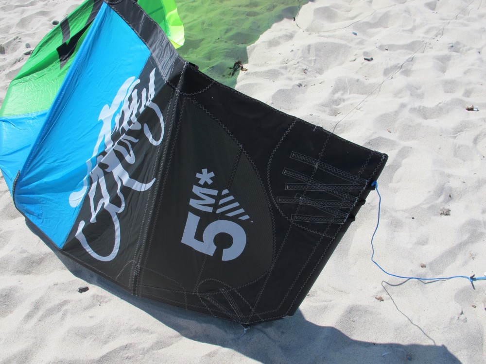The 50Fifty is Nobile’s freestyle kite; we reviewed the 10m last year and really enjoyed flying it. The 5m was the smallest kite we took to South Africa and also the only dedicated freestyle kite. It is based around a hybrid C style shape, with a bridle on the leading edge rather than a 5th line set up. It features 5 struts and quite a deep arc to the profile. A medium aspect ratio is coupled with wide square wing tips.