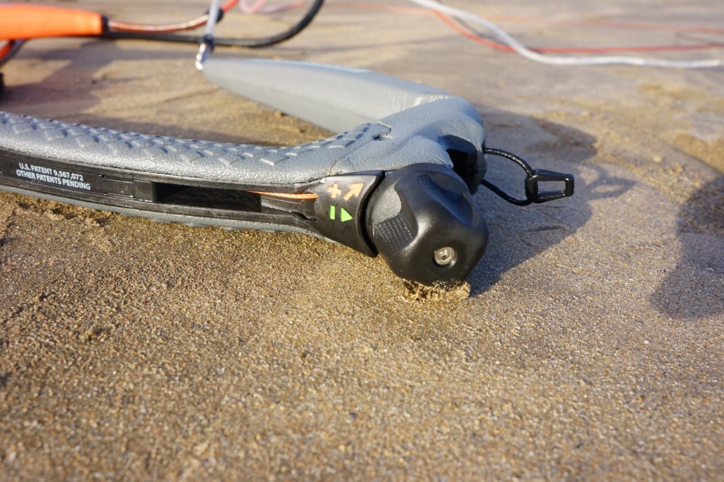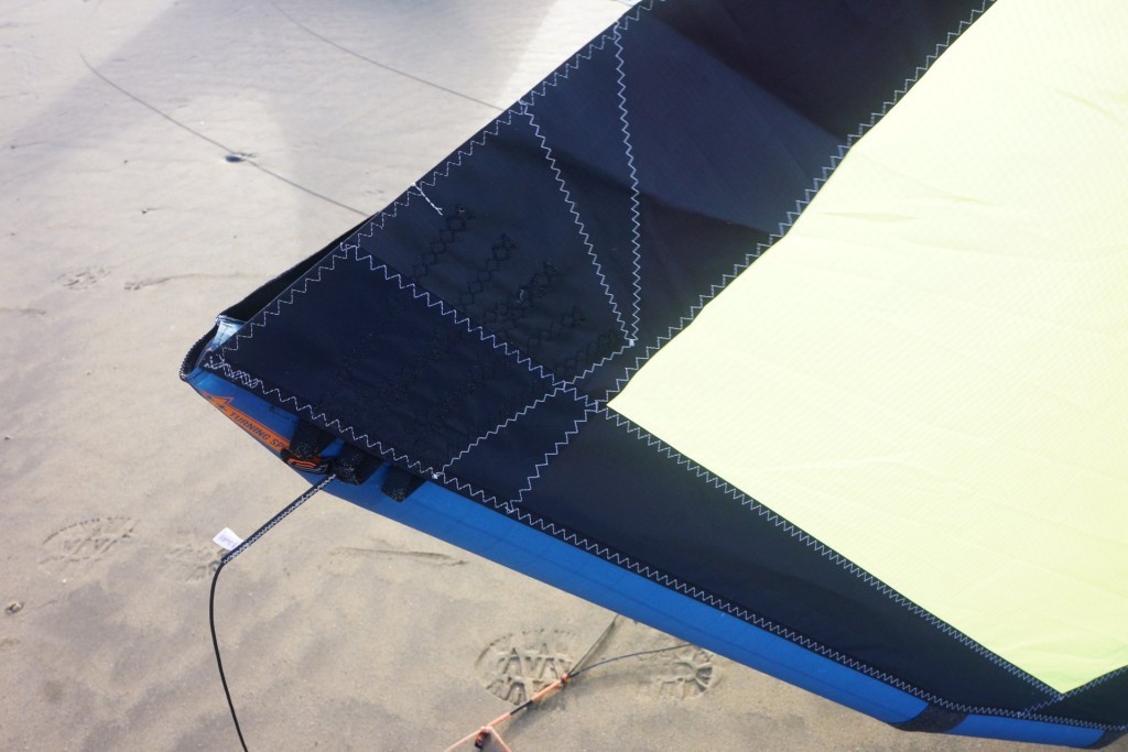 There is minimal lateral pull, meaning the kite won't be pulling you off your board downwind; instead, it sits well at the edge of the window and drives upwind well. The Forward Swept Tips really come into play here with fantastic stability and drive even in the lighter winds, or when parking that kite. When maxed, we were able to depower the kite easily through the bar without any major change in feel.
