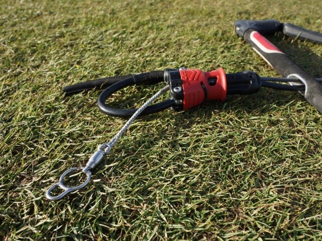 Looking at other features of the bar we see; the ‘Megatron’ push-away release, which is incredibly simple to use, it’s clean and easy to reset. This activates a single line re-ride which is perfect for those sketchy times when you might need it. The integrated bar ends and floats are stylish and simple and don't make the bar bulky. The chicken loop is of a good size and if you require (for extra reach) different sizes are available, these can be used with either the ‘suicide’ mode or the regular safety option. The plastic coated centre line leads through to the simple smooth cleat depower system, with a bungee'd cord this stays well out of your way.