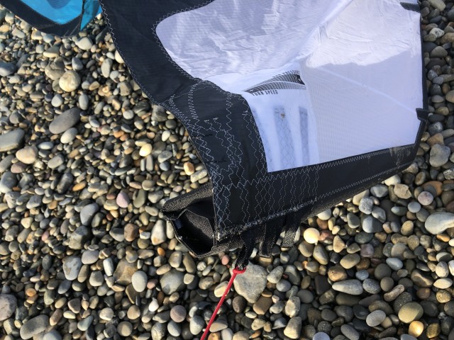 A new bridle features this year, it’s short, but the big news is the bridle adjustment points are in the middle of the leading edge. As you pump the kite up, you are reminded by the graphics and diagrams that you can choose the freestyle, wave or free ride settings. In addition to this are three settings on the trailing edge to tune the bar pressure and turning speed. The build quality is of the usual exceptional high standards that we see from the Ozone factory in Vietnam, and it’s always refreshing to see their no-nonsense construction.