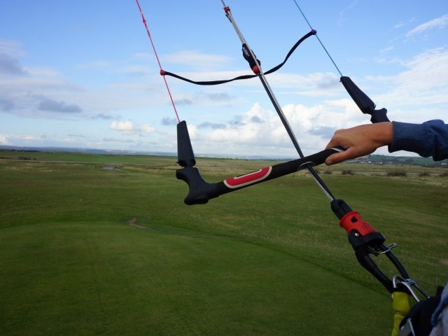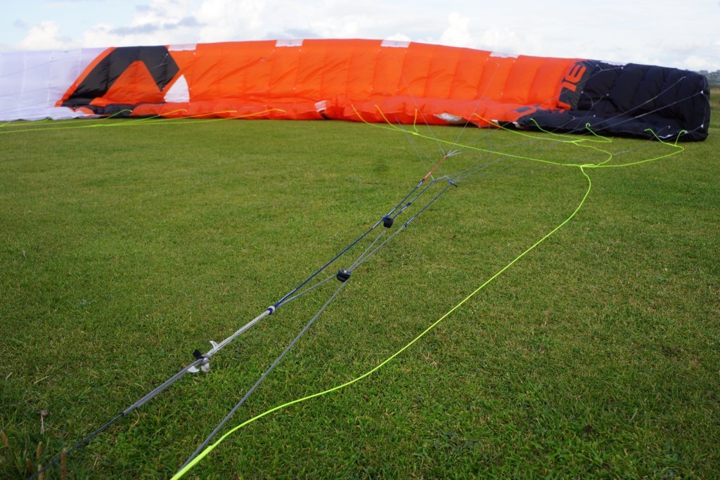 A landing handle is present on the two outside lines just an arms reach away from the bar. It does exactly what it sounds like, and by pulling this handle the kite stalls to the point of collapse bringing it down to the ground for quickly and un powered.