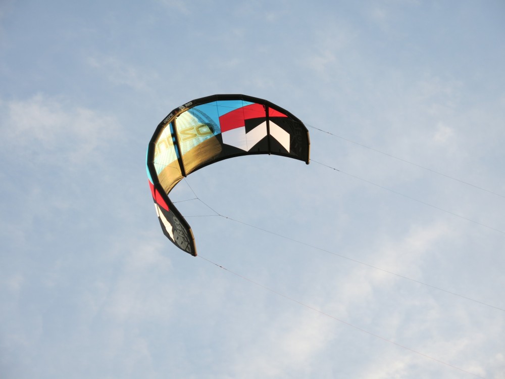 The Ozone Reo is a real pocket rocket when you get it in the air, it has a fast and precise nature that is sure to excite you. The 8m has a very impressive top end wind range, but will also get you going early if you have good flying skills and can generate plenty of power as you move it around the window. This fast and predictive nature leands itself to the waves really well and we very quickly got to grips with the kite. In light winds you need to be aware of a slight stall point at the low point of the turn when bottom turning, if you aren’t ready for it it can catch you out. This trait was noted right at the low end of it’s wind range though and is easily overcome when you are expecting it. The kite is exceedingly light in the air, and the drift capabilities are second to none, even at the bottom if its wind range it hangs beautifully allowing you to concentrate on riding the waves. When the wind picks up the Reo really comes alive and has a smooth power delivery that can easily be dumped with small movements of the bar throw. This allows you to switch the power on when you need to get round a section, and dump it at critical times easily. It’s the speed and precision of the Reo that really garnered our attention though. Whilst billed as a wave kite, it also works well with a twin tip underneath it, the kite flies upwind and has good jumping characteristics too. Meaning the kite is far from being a one trick pony, perfect for riders who love the waves, but occasionally want to jump back on a twin tip and play with that. The bar pressure is light and the kite never feels like it is yanking or pulling the rider in an awkward fashion, it feels smooth and predictable.