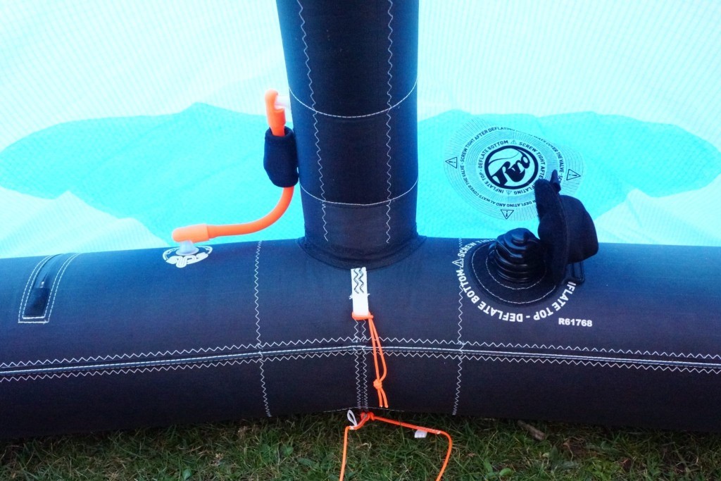 The kite is built well, with reinforcements in key areas without going overboard. There is an interesting attachment for the back lines with an extra flap of material between the bungeed pigtail and Leading Edge to keep things neat and reduce drag. One pump inflation comes as standard, and a larger size inflate/deflate valve makes setting up quick and easy.