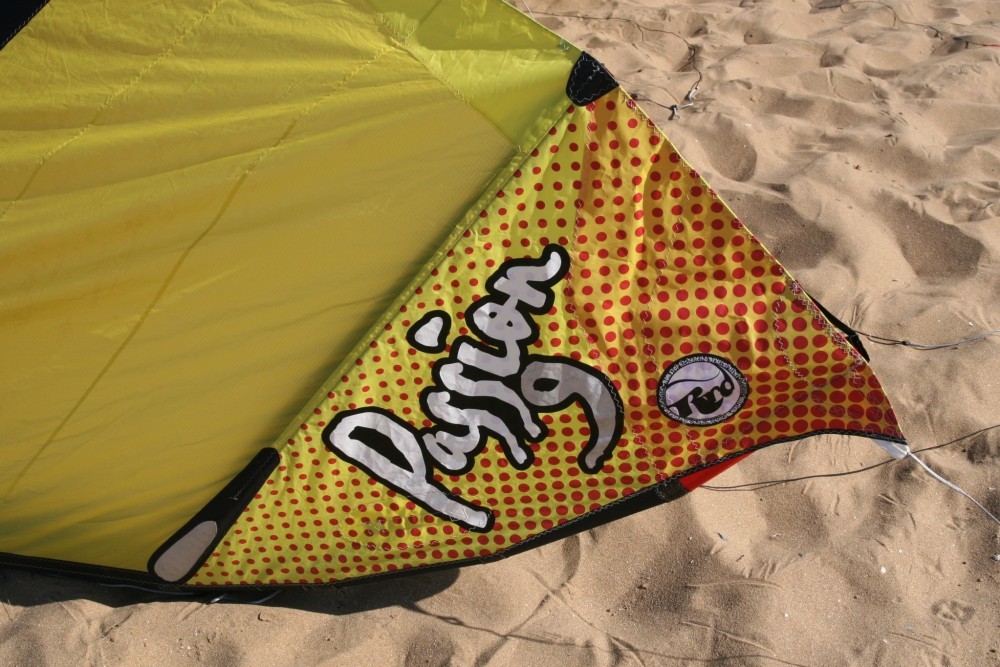 The new 2010 Passion from RRD is a dramatic change from the kite of last year. It still retains the simple bridle set up, but that is where the similarities end. This year the kite has a much flatter arc to it, it still has the delta shape of last year but the canopy is more open. The wingtips have also been completely redesigned and are much shorter and don’t end in the classic point of last year. RRD have pushed more of the power to the middle of the kite and the foil is also slightly deeper as well which should increase the bottom end. The Passion is aimed at the Free Ride market with ease of use being at the top of the design list. They are also lightweight, yet well built with load bearing areas getting plenty of reinforcement. The graphic is of not too, the huge RRD logo is very striking when the kite is in the air, certainly pleasing on the eye and this kite will definitely stand out!