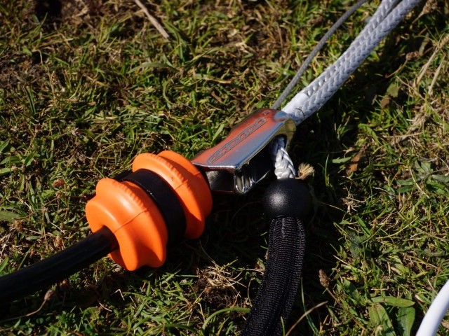 The Vision MK5 is designed to be used with the Global Bar V7 which is very well thought out, with integrated chunky bar ends, and a coated centre line. The depower uses an efficient cleat system, with a large tag to hold onto, especially useful for those with shorter arms. That said, we could reach the depower easily even with the kite at 12 o’clock, so no problems there.