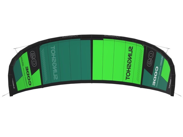 This all-new kite features proprietary kite geometry that is the result of extensive research and testing by Slingshot's design team. The new shape and profile offer remarkable all-around performance versatility in a package that is easy to use and intuitive. By utilizing new materials, such as a lighter and more rigid Dacron in the leading edge and struts, Slingshot has improved the overall performance of the Code V1.