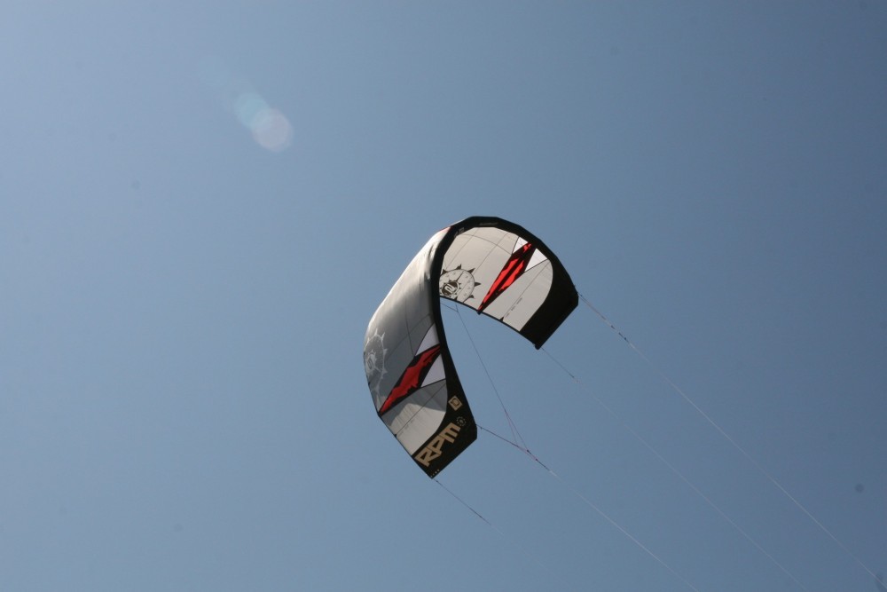 The RPM feels like a larger kite for its size, the wide wingtips and open C shape arc giving it lots of low end power. This kite really does seem to have a huge bottom end range and, coupled with a surfboard, you could easily have the 10m as your biggest kite if you weigh around 80 kilos. The other instantly noticeable feature when you have the kite in the air is just how smooth it is. In gusty conditions it just seems to deliver the same sure footed power throughout, it doesn’t tug and drop back in the window; it sits there perfectly poised. It is almost spooky how smooth this kite is. Don’t be fooled though as the power is there when you need it and once you start moving the kite around the window in anger you can really start to see it’s potential. Kite loops are a very meaty affair, the RPM delivering plenty of yank through the turn, it is predictable though and you won’t find this kite power spiking at the wrong moment. When powered up it cruises upwind with ease and jumps with the best of them, a solid pull from the water is met with a floaty glide of a jump. Perhaps the most impressive thing though is the unhooked performance of the RPM. Being very stable and poised it allows the rider to unhook without worrying about the kite doing anything strange. It just sits there and continues to pull. Bust out your trick and you’ll come in to land to find the kite exactly where you left it. It is almost as solid as going to the cable tow! Something that will appeal to a lot of riders. Suited more towards the experienced freerider or the freestyler looking for the benefits of 4 line simplicity and the depower of a bridled kite the RPM is sure to set a few hearts racing. The power and grunt rule it out for the beginner to be honest, this is a powerful beast with top end performance up its sleeve that is just waiting to be unleashed.