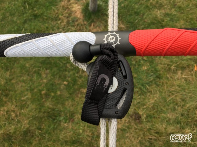 With the Sentinel Bar, Slingshot have swapped the traditional set-up around. Placing the line swivel below the bar so it can be operated manually and the depower system above the bar with a magnet to keep the depower rope in its place out of the way, Genius. So good in fact I’m thinking of changing all the buttons on my shirts and trousers to magnets!
