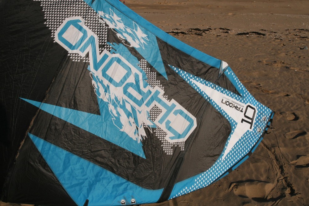 The Chrono from Takoon is a new kite in their 2010 line up aimed at the high performance and free ride end of the market. Takoon have been making great kites for years now and they often get overlooked in the UK. The brand was one of the first to work on the bow kite concept and produced the Nova back in 2006. Years later they have been churning out some awesome designs and the Chrono looks to follow in some impressive footsteps. Out of the bag the kite has all the usual Takoon features, one-pump, lightweight build, small struts and an extensive bridle. It also features a flat middle section in the leading edge and there is no centre strut. Instead 6 smaller struts further along the canopy make up the framework. There is reinforcement and padding in stress areas, but this kite is designed to be lightweight and responsive, so you’ll need to treat it with a little respect.
