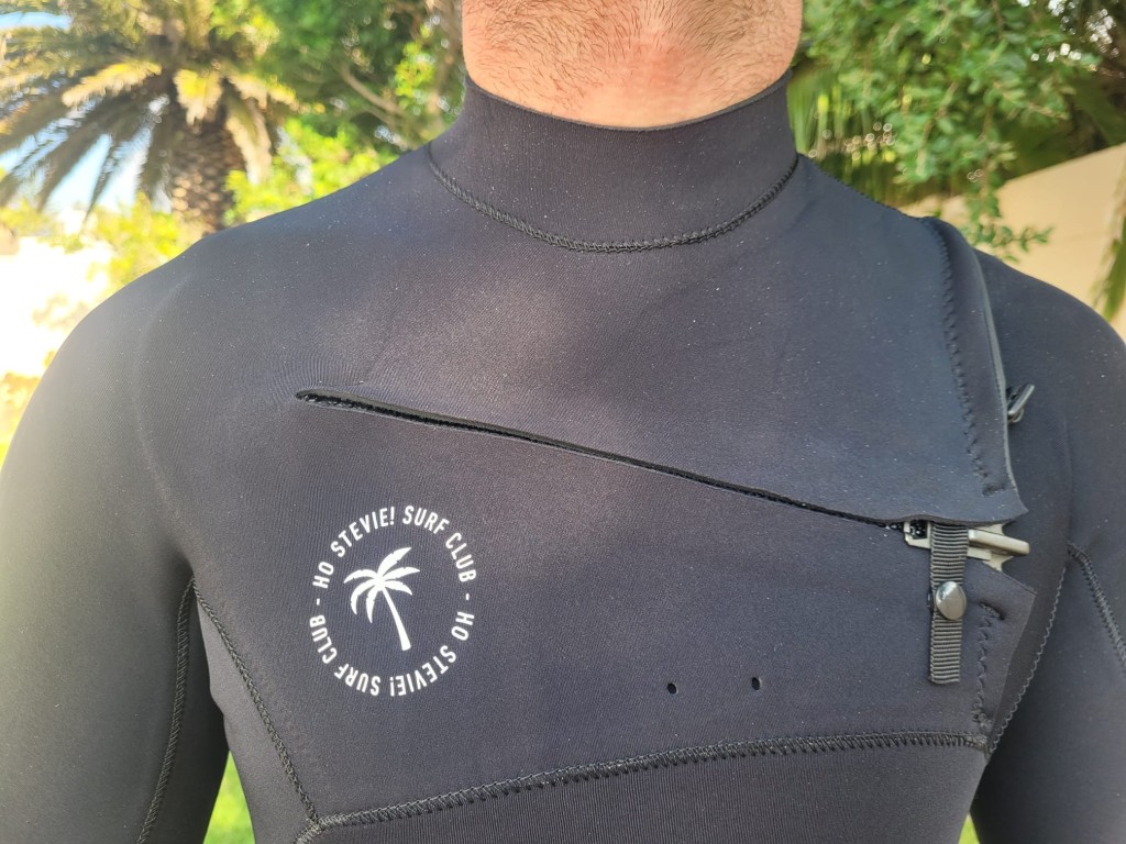 At first glance, we were quite surprised by the feel and look of the suit. It's a minimalist black neoprene, front zip wetsuit, with the cheerful Ho Stevie! Surf Club palm tree logo. While simple, it is not lacking in the features that matter to watersports users. We were stoked to see an original YKK zip, the creme da la creme of zippers. A nice feature on this suit, which should be a staple in all wetsuits, was the key loop in the front of the suit, for easy storage of your car's water key while out for a session. The price point of the Ho Stevie! is incredible, and before even putting it on, we were already blown away by the quality for the price.