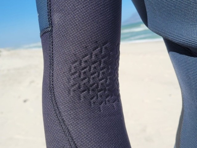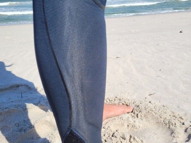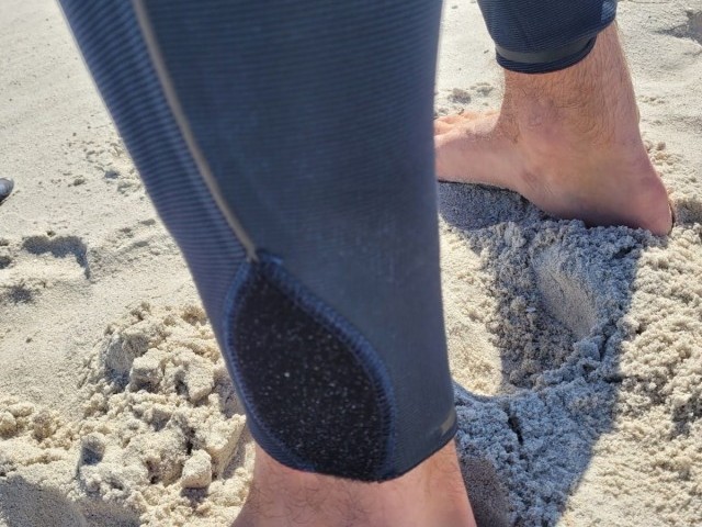 I noticed if water got up into the legs of the wetsuit, most of the time, it would drain on its own through the drainage area in the back of the ankles. Not having to worry about jelly legs is always nice! There are carefully placed (and reinforced) drainage holes in several areas that did a great job. There are also small rubber tabs on the inside of the wrists to keep the suit in place, even if you've come out of place on your board!