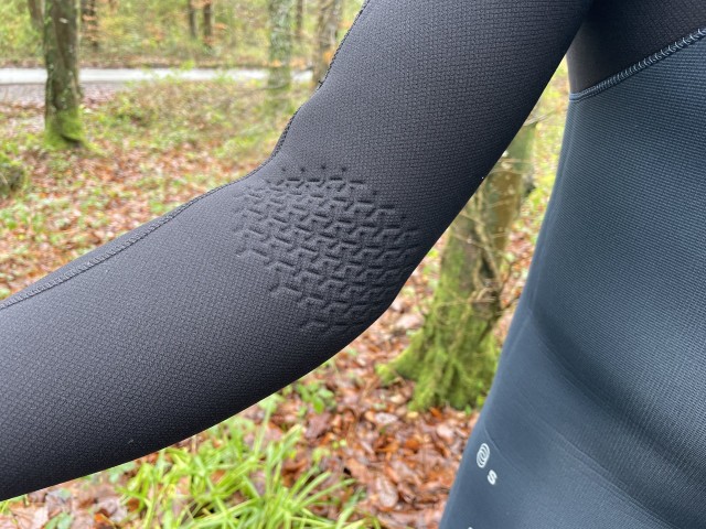 On the inside is the Graphene_Plush lining, which was new last year; this was the secret to the suit's warmth, and it is back for the 2022/23 season. The arms and shoulders feature the Hot_Stuff 2.0 lining to increase flexibility and warmth in that area. There is also a new silicone print on the material covering the zip; this grips itself to effectively close the material and ensure you don't get wind or water through the zip.