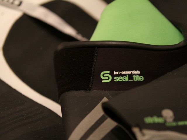 The Ion Strike Semidry comes in two versions, the skin or single lined style we have here and the double lined option. It’s a kite-optimised suit, comes with leg straps and flush panels to guard against elephantitis of the legs and the skin version we have uses a more durable neoprene to add to it’s durability. The single lined finish will still need a bit more TLC than your average suit though. ION use three different types of neoprene to optimise durability and flex and the finish is very good. The seams are glued and blindstitched to create a good seal.