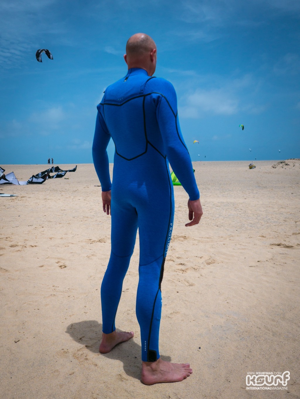 The Freezip is a concept they have been working on for a few years, and it is a revelation. Usually, the zip is connected at one end, and this creates a tight spot as you pull the suit on. Prolimit keeps the whole zip free, you climb in through the opening at the top, pull the flexible suit on and then when you are ready, pull the neck over your head and connect the zip.