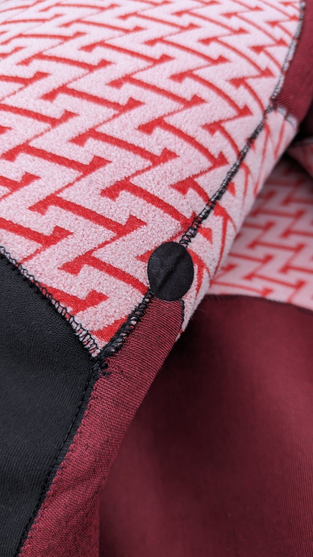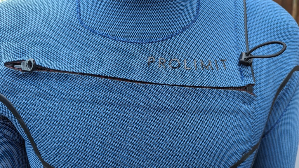 Prolimit also uses glued and blind stitched seams, in which triple glued panels are stitched together using a special method that partially punctures the neoprene, ensuring the watertightness of the seams. Each thread is protected by a tape at the end, and the resulting finish makes the seams highly durable. The precise seam and material placement provide a tailored fit without over-stretching the neoprene, preventing thinning and loss of thermal insulation.