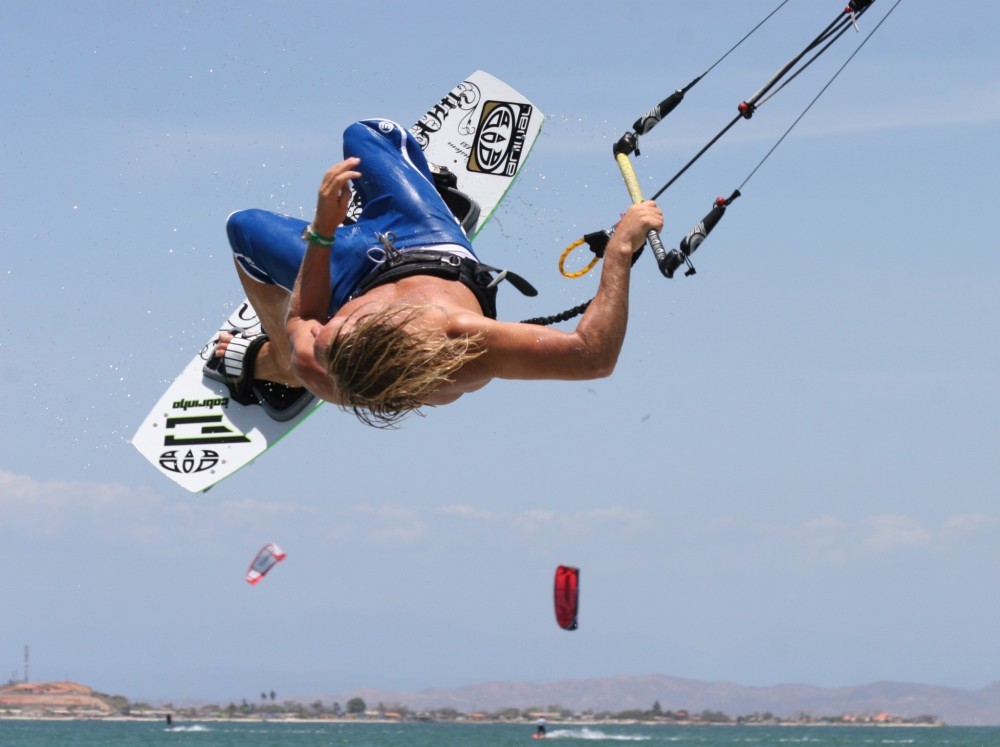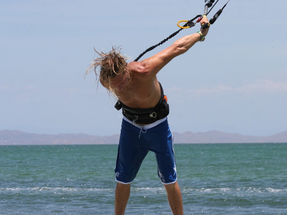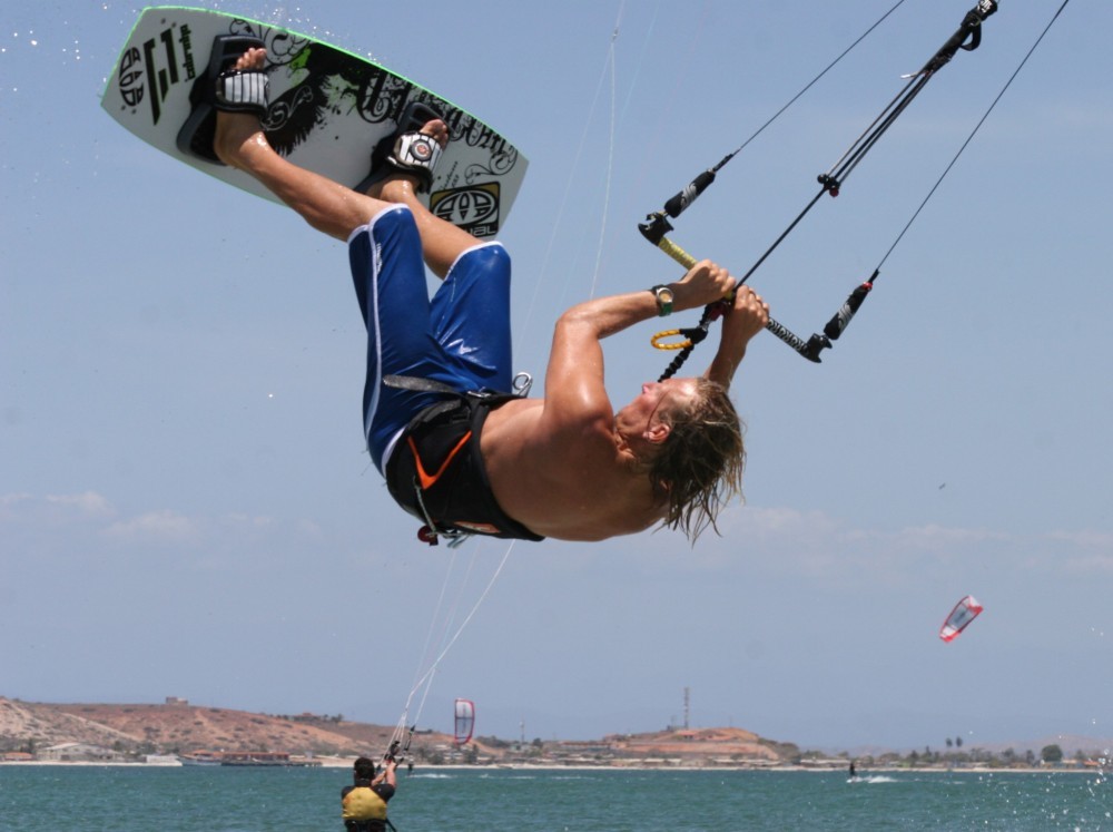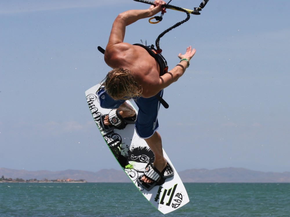- Pic 1. With enough power in the kite and speed under the board to pop against Christian has unhooked, pointed off the wind and is now carving hard into his pop. His bum is down and front leg is extended for a decent edge, whilst his back leg is slightly bent ready to explode for take off.