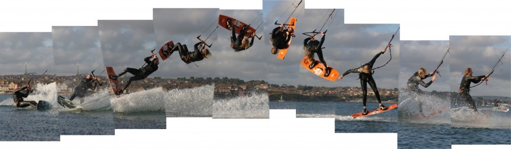 Many of us are not quick reflex, compact gymnasts, so time and float will be important. If you’re 80kg or above try and practice on 12m, or 10m if you must. The lift, which a larger kite generates, will enable you to keep the kite low enough to make the pass easier, whilst rewarding you with height off your pop. Once you get down to 8m and 6m kites the whole process needs to be sped up. And if the waters choppy too, it can be tricky to get the height without sneaking the kite up, which therefore makes the pass trickier. The video was taken using an 8m, and is far more hectic, whereas the following sequence was using a grown ups 12m, and is considerably more mellow.