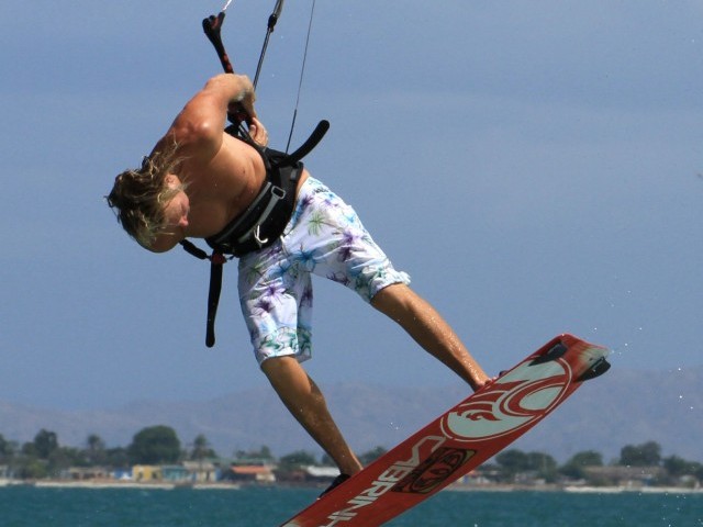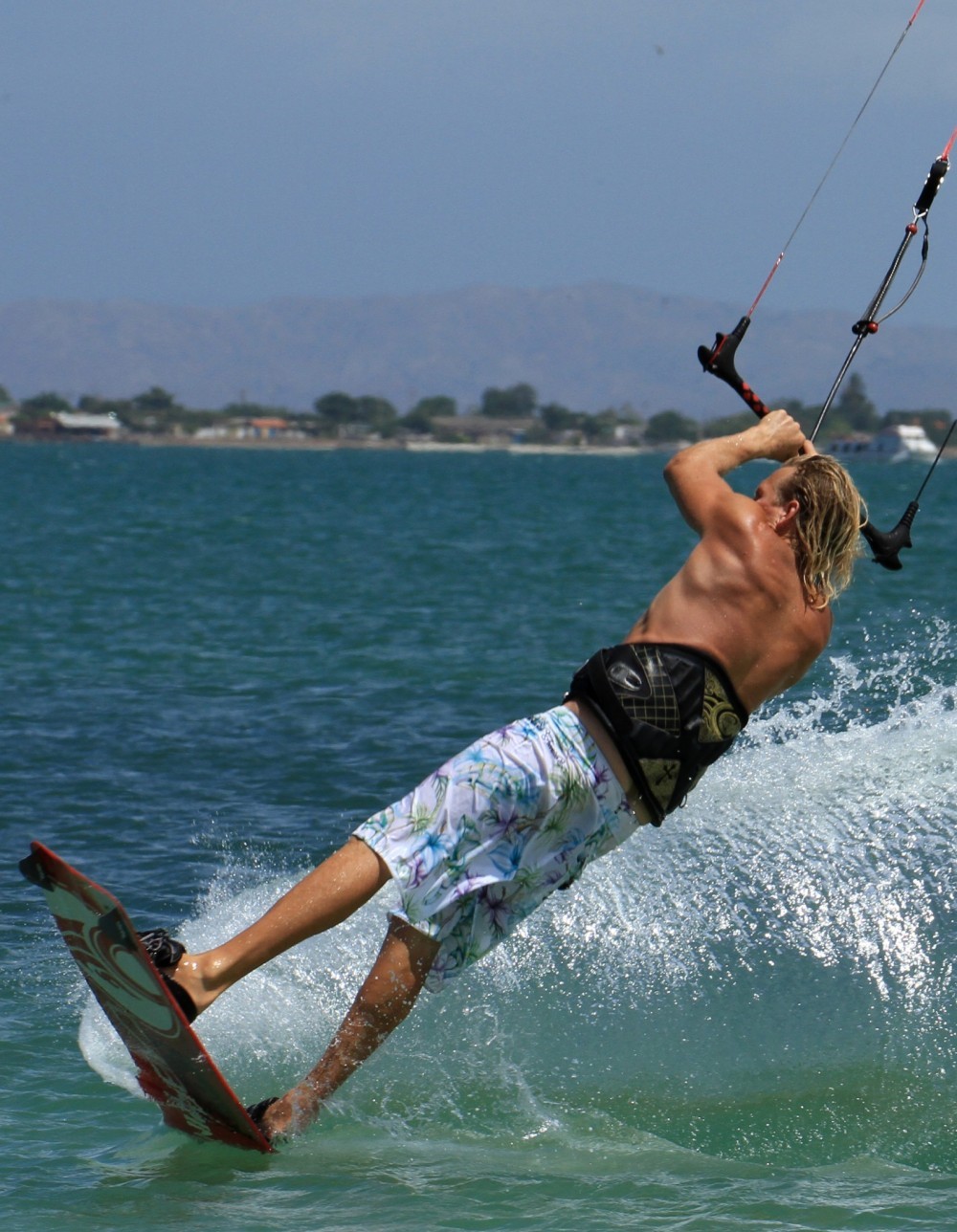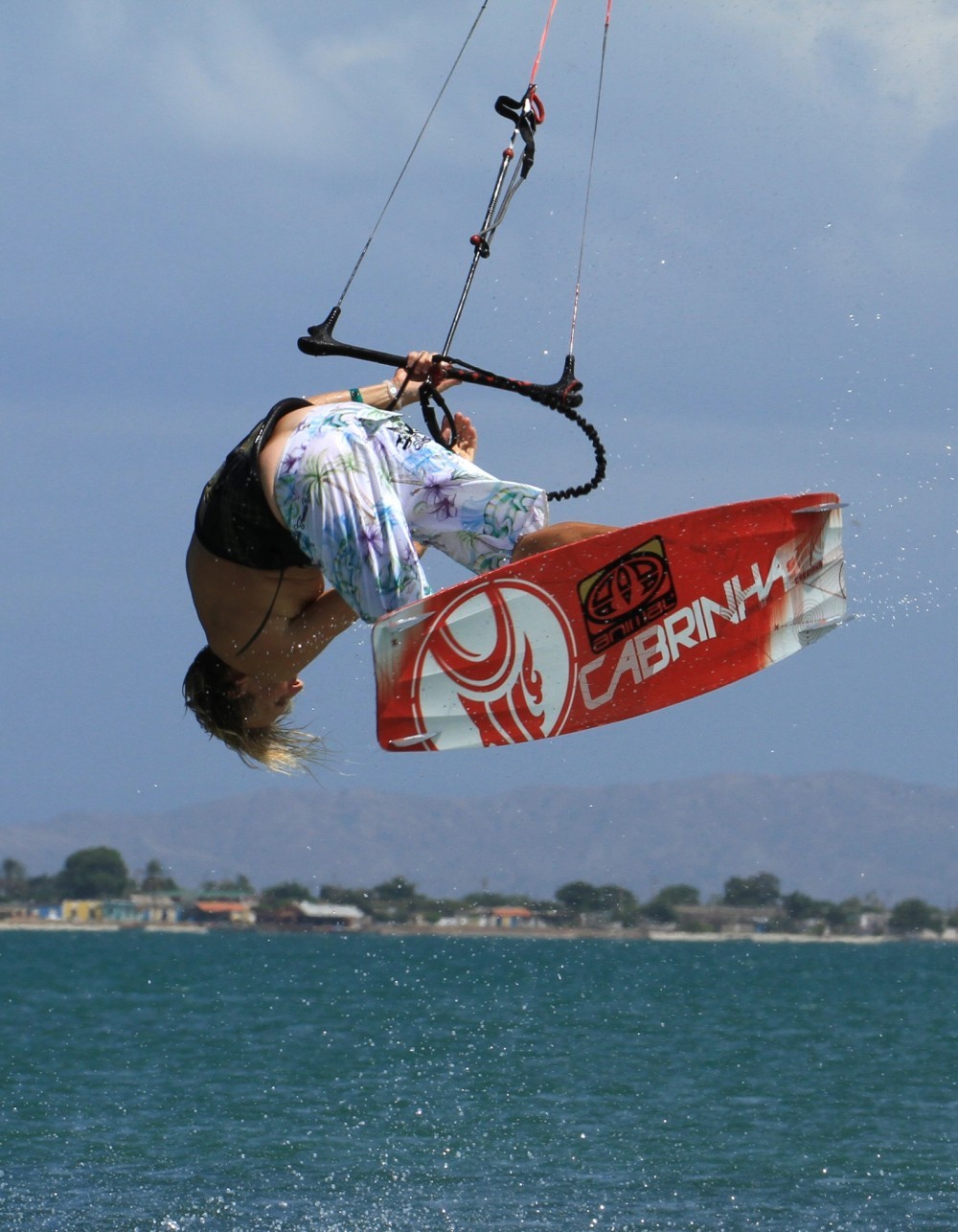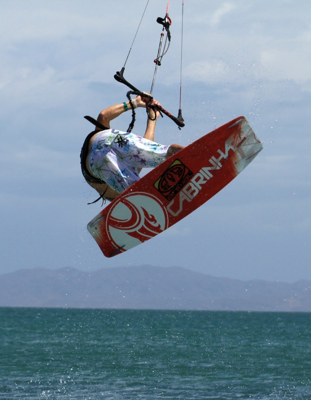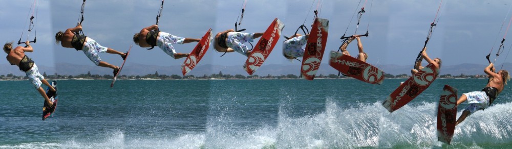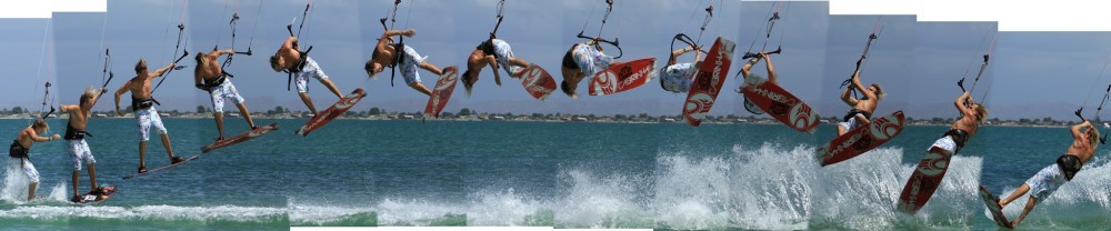 - Pic 1. With his kite around 11 o’clock and weight well back over the tail of the board Christian carves hard into wind with his hips and shoulders and explodes up off his back leg into a slow back loop.