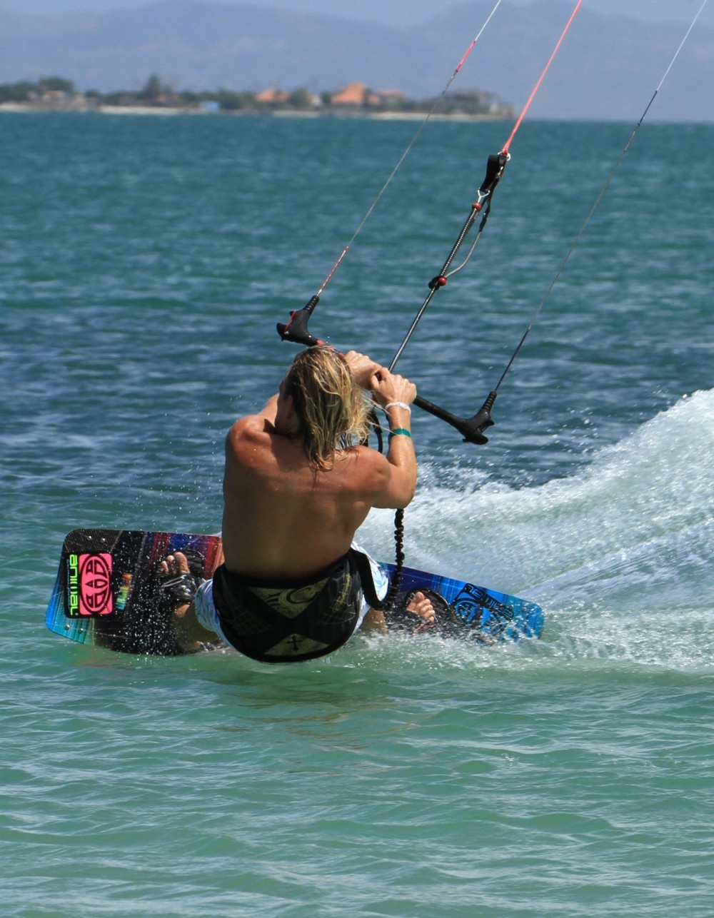 A great move in its own right and a potentially good lead into the back mobe. Only thing going against it, is if you are deliberately keeping the kite low to help you around the rotation, you will be throwing yourself around, trying to over rotate in order to land wrapped, which will do nothing for your pop or kite control. On the positive side it teaches you to hold onto the bar once you’ve released you back hand – this is a good thing!