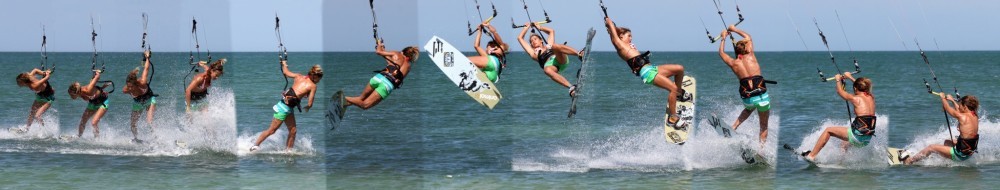 - Pics 4 & 5. Still looks strikingly like an unhooked pop front loop. Karine is rotating extended and is trying to get her head around to see where she’ll be landing. She’s also concentrating on not pulling on her back hand. If the kite goes too high, it’ll make the pass much harder.