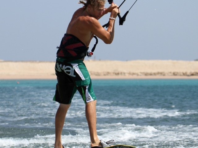- Pic 5. With his body and board in line with his kite Christian will spin effortlessly.