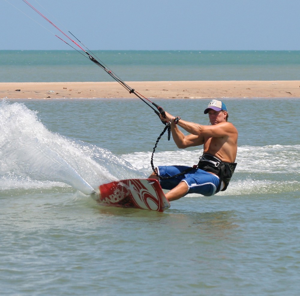 You need this edge and carve for two very good reasons. Obviously you need to get the pop for the height. But even more importantly you need the pop to be able to pass the bar in the air. By edging like this you hold the kite back, it drops back in the window and you can explode up against it. Once you pop up the kite shoots forward, and then as you accelerate after it the lines loose some tension, giving you the opportunity to pass without having arms like Arnie.