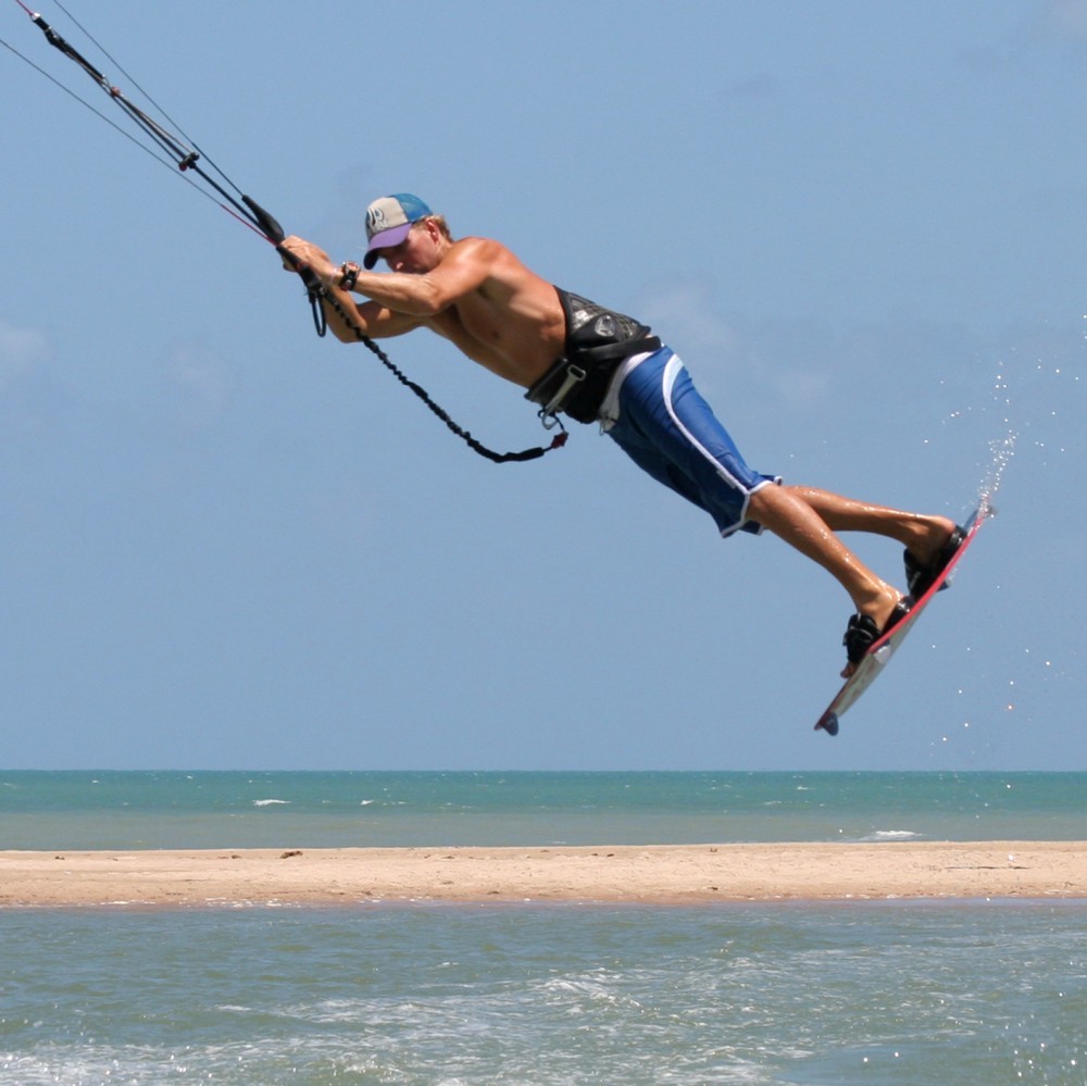 - Pic 5. Christian keeps his arms bent and his head above the bar. If his kite were too high this would be the perfect time to tweak it down.