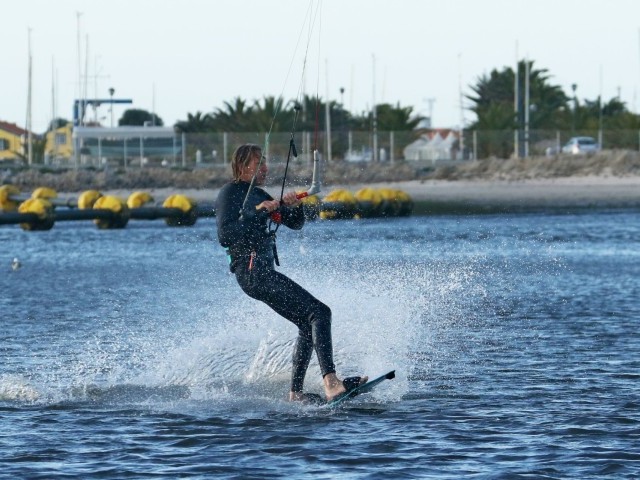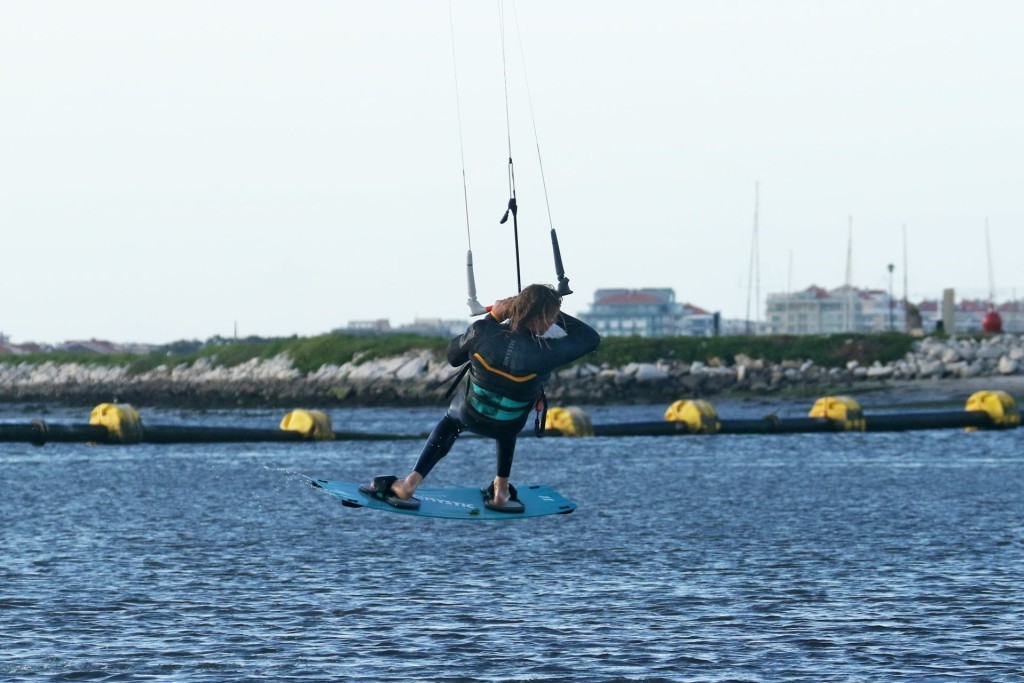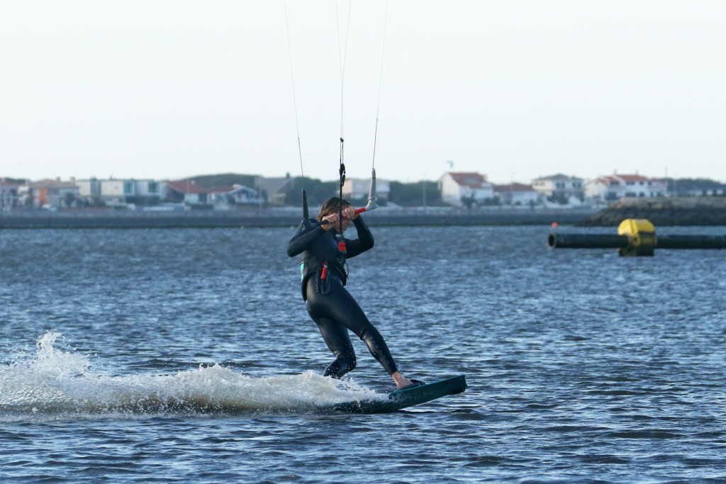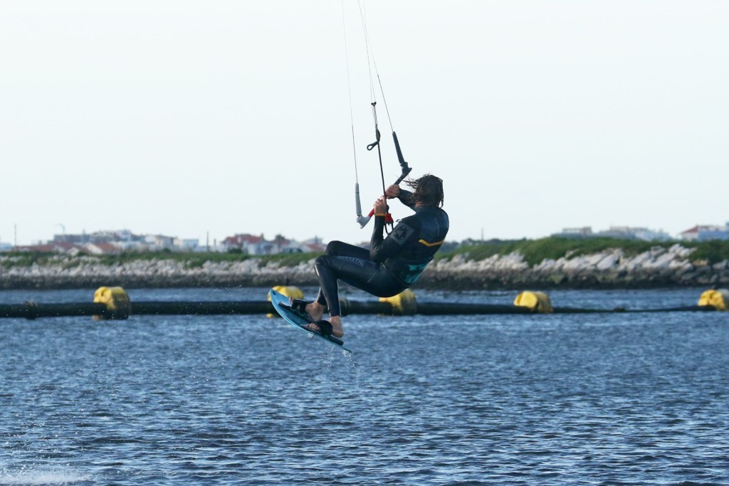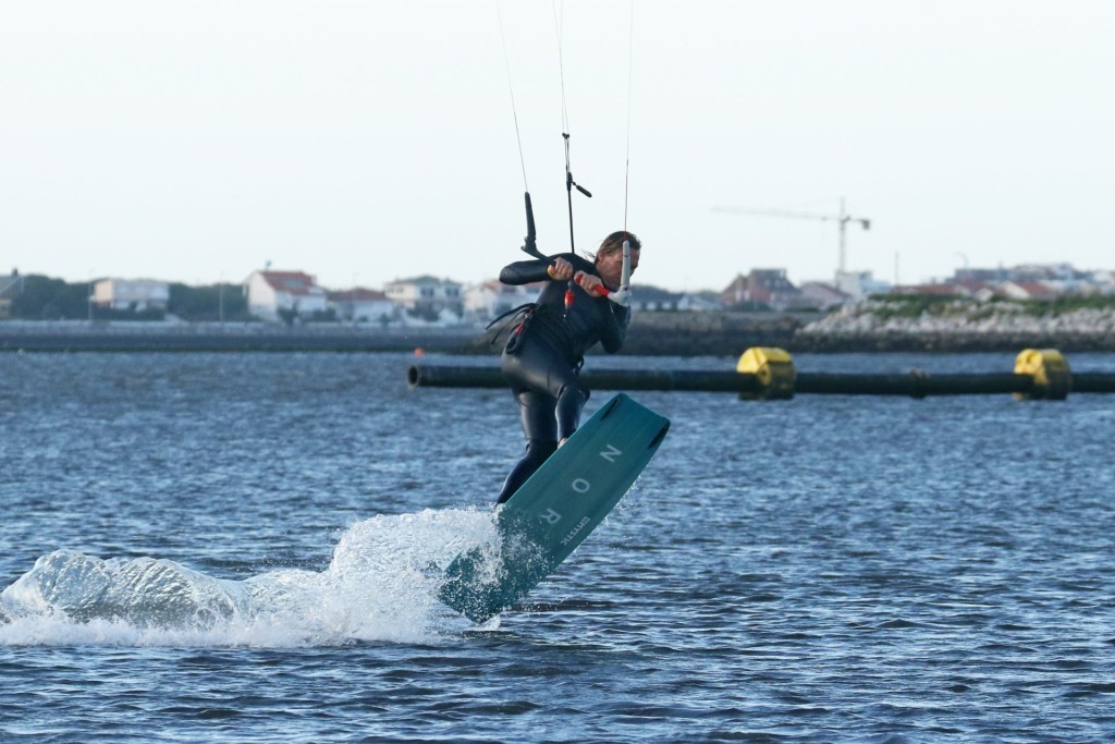To resist in preparation for even a small sent take off from toe side you need an upwind edge. The more edge you have in the water the more resistance you get, but without drag. Drag slows you down, resistance squirts your forwards. Now think about your early attempts at toeside, or perhaps toeside on your weaker foot – where is your weight. Right back over the tail of the board. You’re sinking the board, it’s dragging through the water and slowing you down. It might feel like resistance but really, it’s no different from towing your laundry behind you. To make it efficient you have to learn to get your weight forwards, trimming the board from front to back whilst still edging. Look at the picture and you can see plenty of Christian’s board in the water. Suffice to say you need to get your weight forwards and onto your front foot. The easiest way to do this is to open your chest and hips, facing forwards down the board so that you have a shoulder each side. This with a bent front knee, hips and head dipped forwards and both knees driving forwards, pointing in the same direction and working together opens the door to a world of possibilities. It will be simpler to adopt this position if you let your back foot twist in the strap and point forwards. Always the same analogy here, think of a surfer racing down the line or a slalom snowboarder in hard boots. Coming into any toeside trick this is your approach position – comfortable speed, no drag and kite flying at 11 or 1 o’clock on the edge of the window, ready to send. In the pic Christian has his chest open, two hands on the bar, knees driving forwards and plenty of edge in the water.