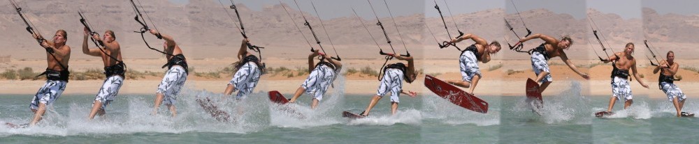 - Pic 3. As the board rises Christian lifts his legs and starts his rotation by turning his head and shoulders down and away from the kite.