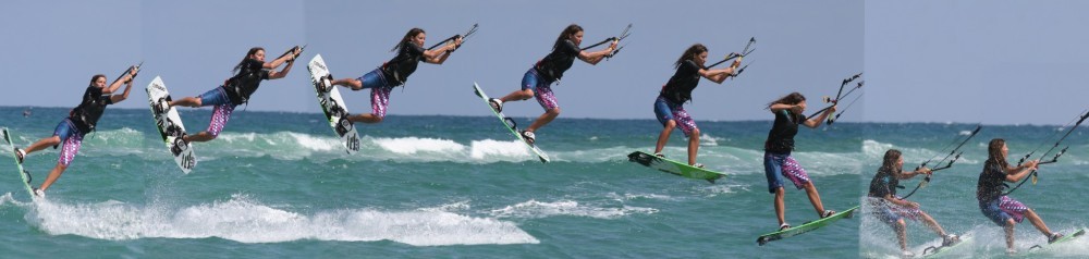 - Pic 8. She now explodes up off the water by violently straightening her back leg, as she feels the kite start to pull.