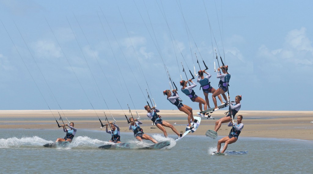 Understanding which direction you rotate is very important. The best way to think of it is that you’ll be carving up into the wind and continuing around from there. If you quickly look at the sequence, you can see Karine jumping on port tack, riding from right to left. She’s taking off, turning up into the wind and carrying on around until she can look downwind again.