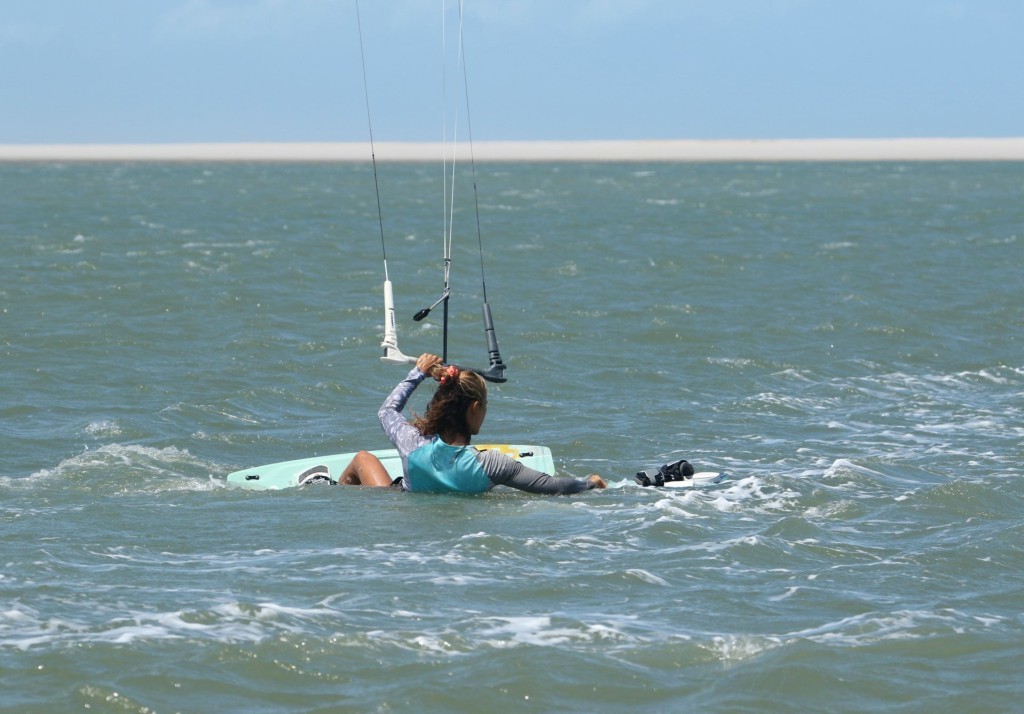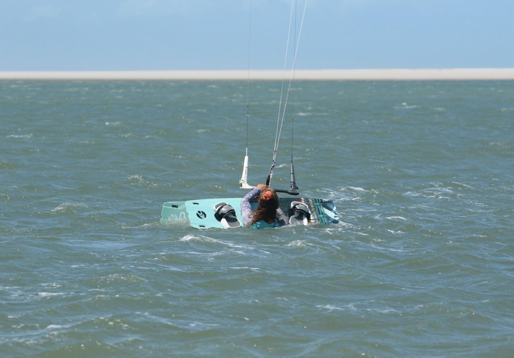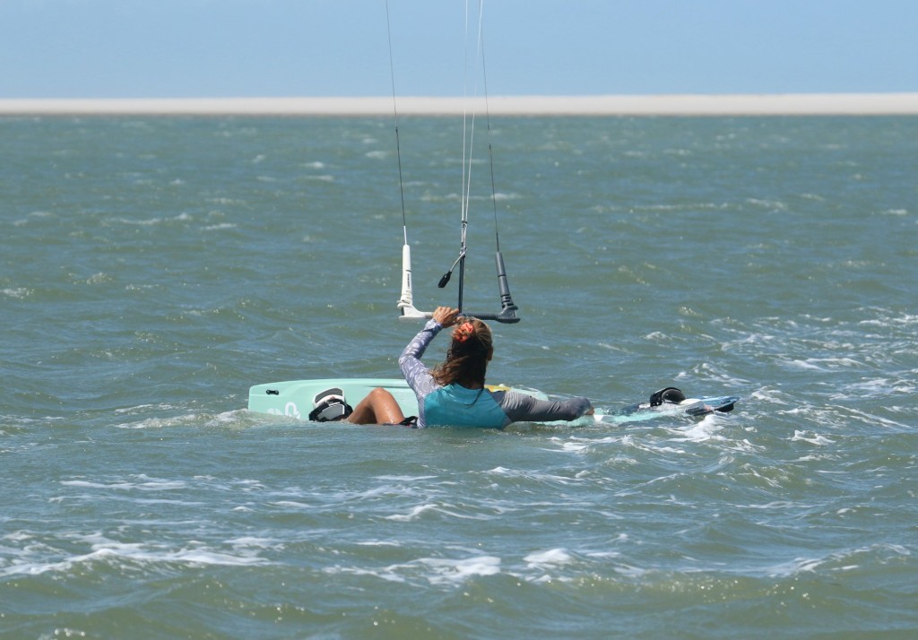 You can now confidently hold the board in place whilst you water-start. If this is your first time, be gentle. Better too little, and to have to go again rather than get launched with the extra board in front of you!