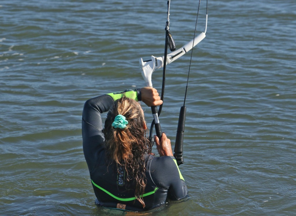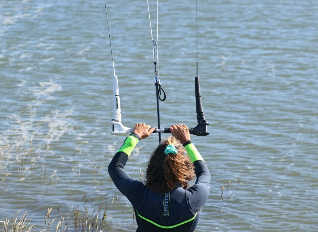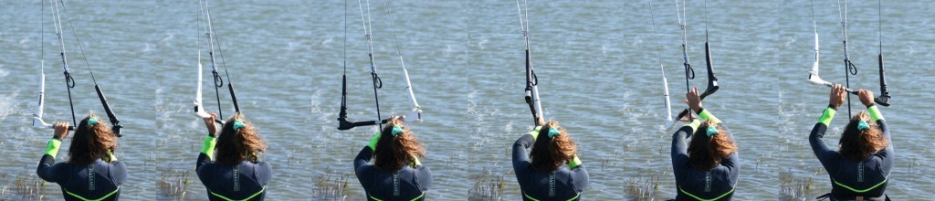 There's no need to rush; you have time for each step. When the kite starts to rise, you can level the bar to stop it turning any further, and if it's gone too high, you can even dive it down to generate enough power to keep going. You're in no hurry to untwist or unspin your lines. You can happily ride, work your kite and be in full control with this twist in your lines. Once you're happy and settled, you can then untwist.