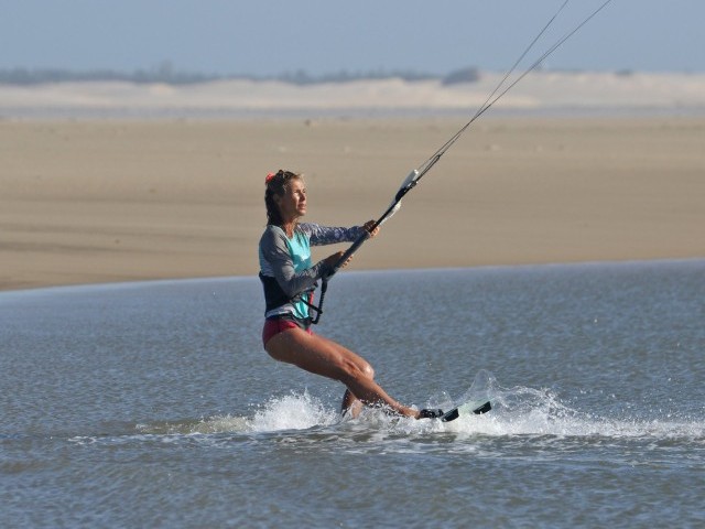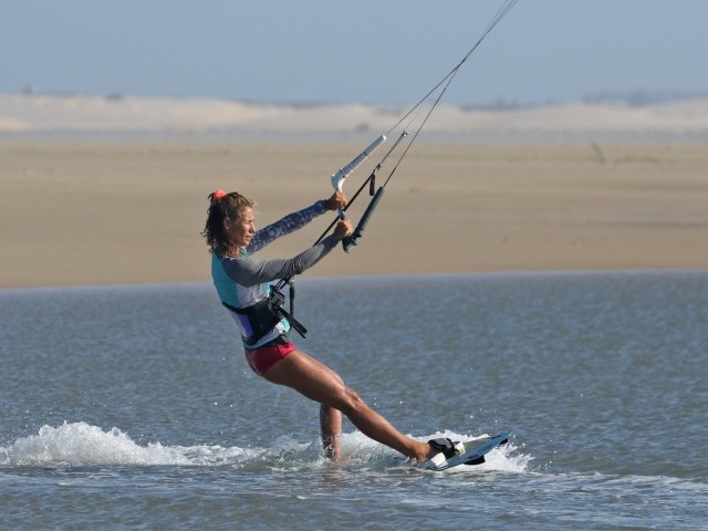 - As she drops, Karine looks downwind, points her board off the wind and steers the bar to dive the kite. Standard procedure.