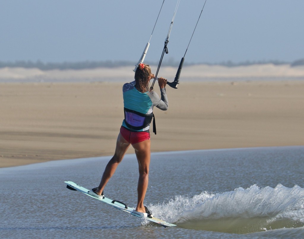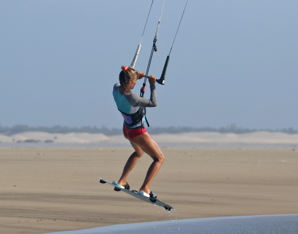 - Once the kite is heading forward in the new direction, Karine levels the bar out and accelerates out of her jump transition.