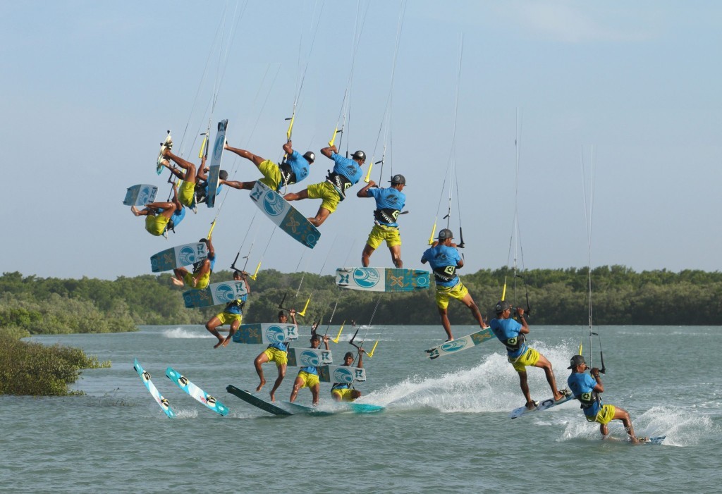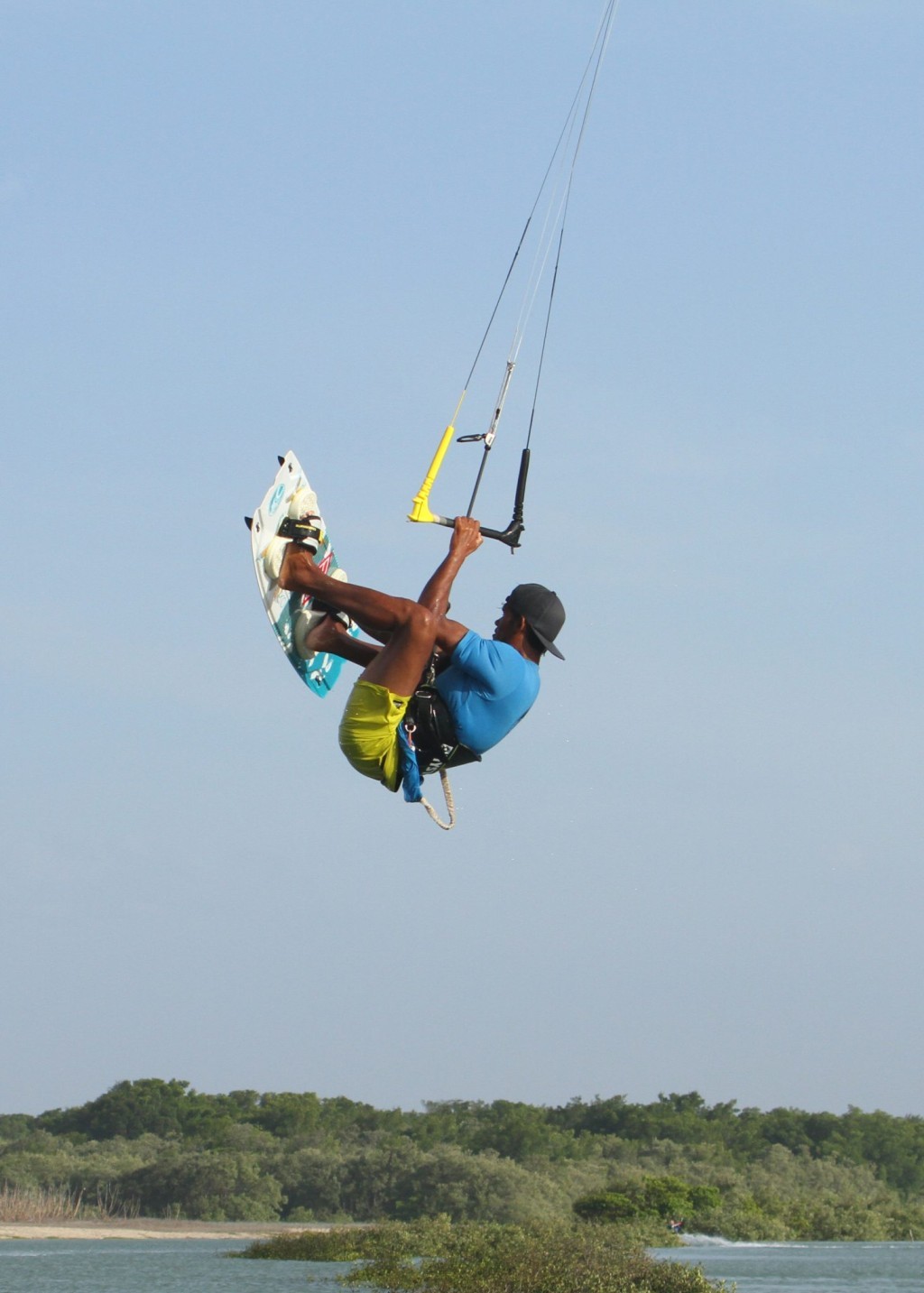 As much as we feel that Sir David Attenborough would better explain this, in a nutshell getting yourself as small and compact as possible as soon as possible is key. When a flying squirrel extends into flight, it soon compresses as it eyes up the rapidly approaching branch. Here again float rather than height is justified. If you go big, you’ll be extended for longer. So, to get into board on position sooner, less send is required. The other important factor here is the oft-required slow rotation. With only your back hand on the bar, you really need to get your toes in the stirrups sharpish, so that you can get your rear hand back on. Here Heliarde is barely off the water, and yet he’s pulled his knees straight back up. It’s also worth noting that he’s looking at the board. As well as guiding feet and straps towards unification, it keeps his head perpendicular to his shoulders which keeps his rotation slow. All the while it’s imperative to keep the bar in on the sweet spot with your elbow high. Otherwise, the kite will flutter back and drop you unceremoniously.
