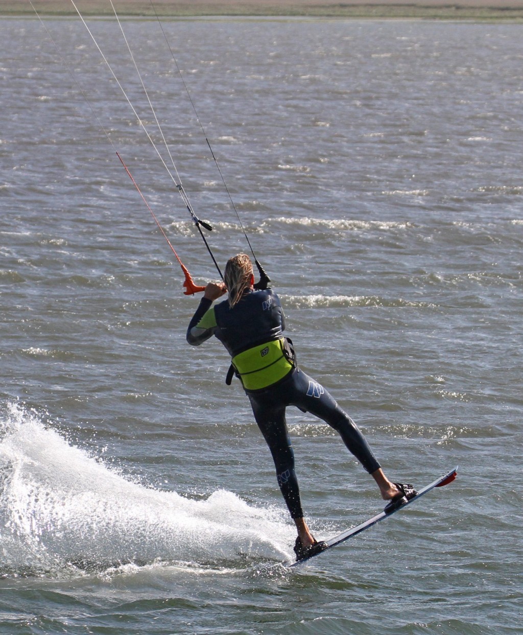 This should be a pretty comfortable part of the move. Your preceding edge and send will see to that. Not enough edge or too much send will ping you off the water, and you won’t have the balance, control or confidence to chance into the unknown. Also seeing as how you have given the kite a decent send for height and time, you will need to stop it going any further.