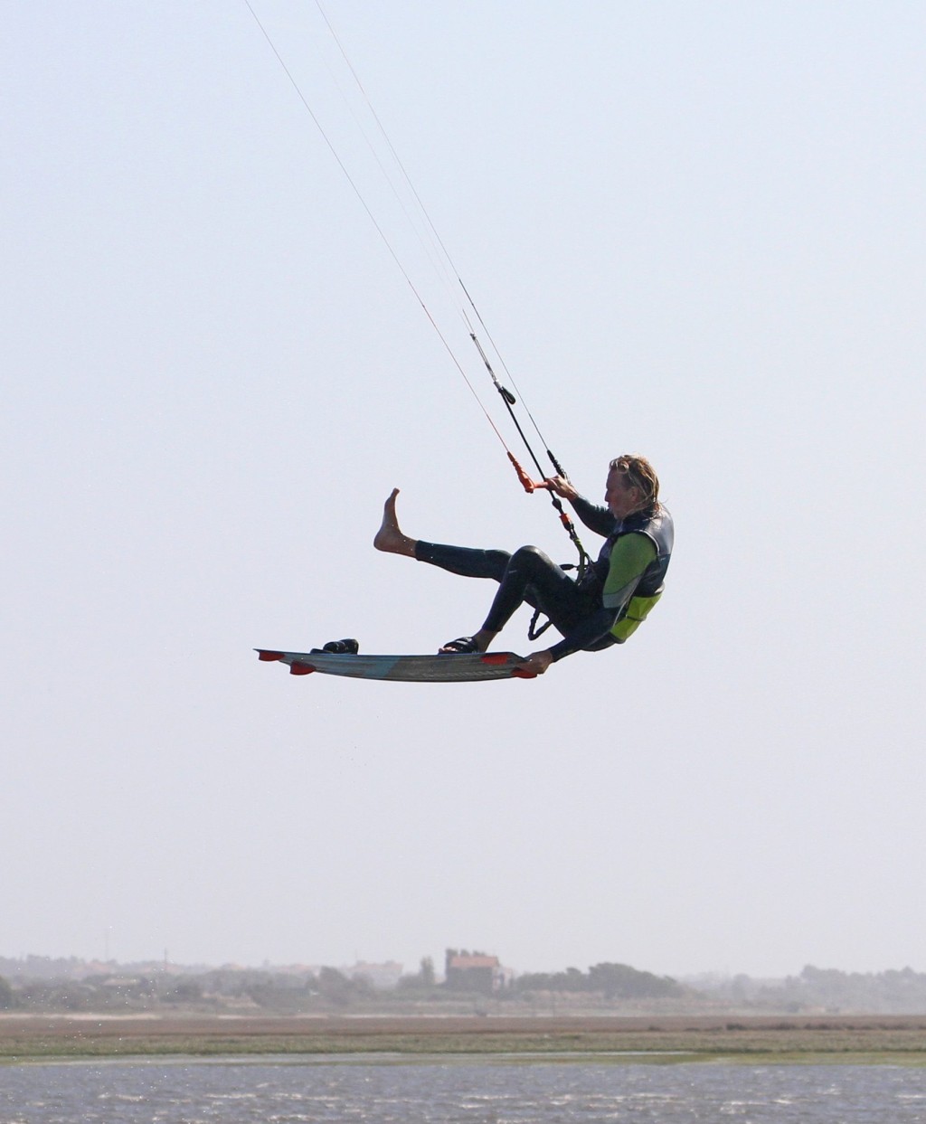 And once it’s out why not wiggle it around? The money shot, lift your leg and make it count. That said you still need to be thinking about the kite. By having the bar in the kite will have naturally been drifting forwards while you’ve been concentrating on airing your toes. As it moves, it’ll generate a bit of lift and potentially give you a tad more height, but will definitely give you a little bit more hang time.