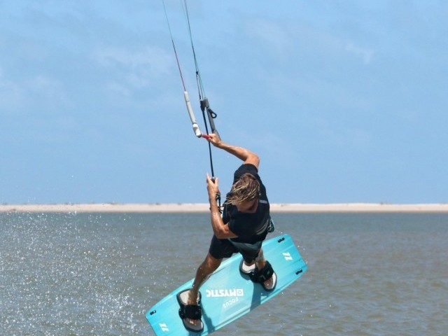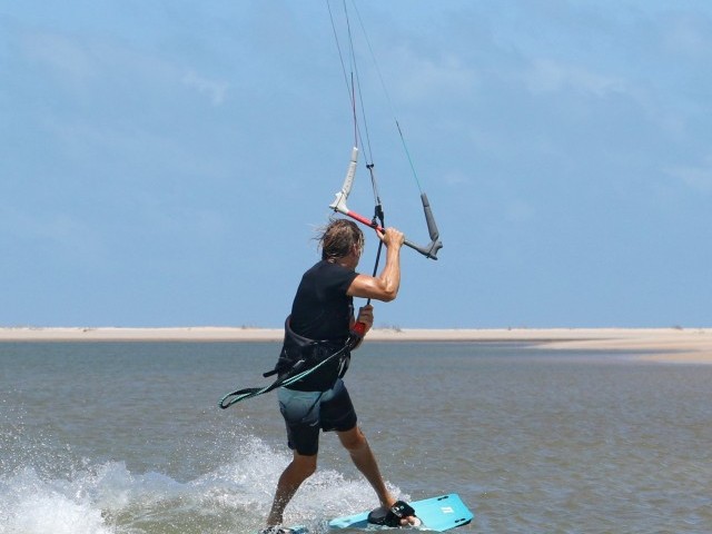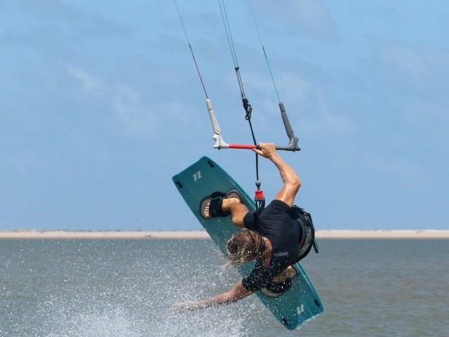As for all support moves there are two absolute necessaries here, lift in the kite and tension on the lines. Admittedly with tension you’ll have some lift, but trying to learn this in subpar conditions when you’re a tad under will make life unnecessarily hard. Now assuming that you have plenty of beans in the kite, make sure you have a good solid upwind edge to put plenty of tension in your lines. This way you’ll be able to feel the kite and know when it’s time to go. Whilst on your edge with your kite at either 1 or 11 o’clock move your hips back. This will lower your bum and place you nearer to the water. With your posterior close to the drink, you’ll need to break at the waist to keep your bar out on the sweet spot, which you’ll want relatively far away. Hence the need for power.