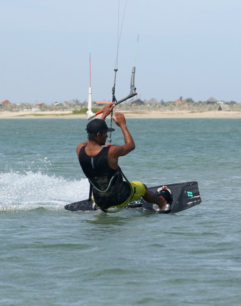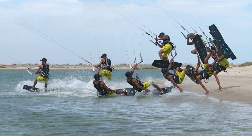 As Europeans born considerably the wrong side of the Millenium it’s not a word we use frequently, but it does rather fit the moment, pure steeze! And utter concentration. Belly free t-shirts, white knee pads with rainbow straps, cut of jeans and you’ve got the picture of how it once was. This is the moment when you can press the pause button, a short stall, get the product placement in and then off you go. It’s all about support here, not actually holding yourself up on your arm, and your kite position will mean the world. Too far back and it’ll pull you away, a couple of degrees past 12 and your in float town. What you can’t see is that Heliarde now has his bar pulled in further. He’s also got his eyes on his escape route. Yet again it’s no drama, if you’re too greedy with the pause you’ll just loose lift and flutter down.