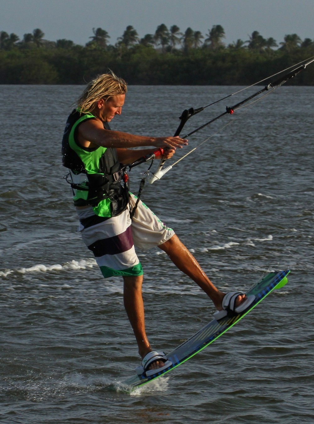 As already mentioned we’d recommend learning this on a bigger kite in lighter winds first as the support is crucial. Without the consequence of a 7m spanking you’ll be far more willing to sit back in the harness and lift your board out of the water rather than pop it.