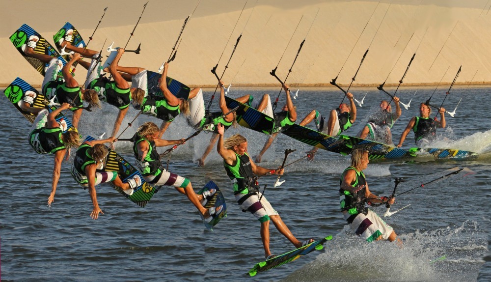 This is the closest that many of us will ever get to break dancing, casually spinning whilst gently inverting over one hand - the joys of kiting indeed. To learn this move you need speed so that you’ll glide, plenty of lift to hold you up and a flat spot will certainly help. Larger kites will support you better, but you’ll need to be on it with the late kite loop or else it won’t get around.