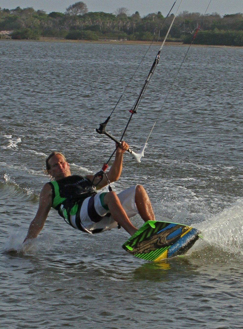 Still pulling hard on his back hand, Christian’s new front hip and leg have “followed” the kite, so all Christian needs to do is drop his legs and take the landing.