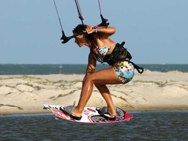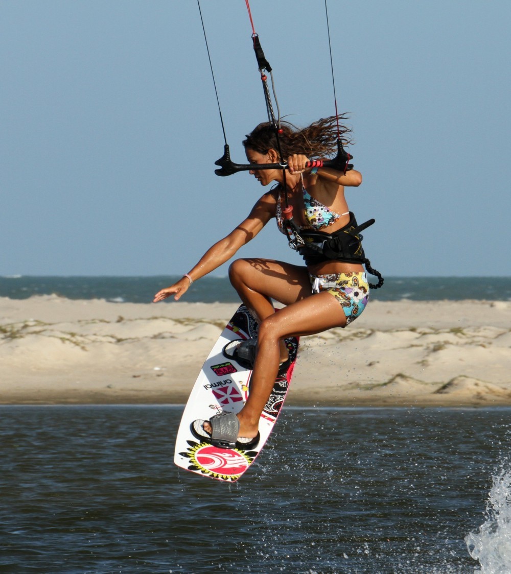- Pic 3. And then as the kite starts to pull pops hard by stamping her back foot hard against the board, extending her back for maximum pop.