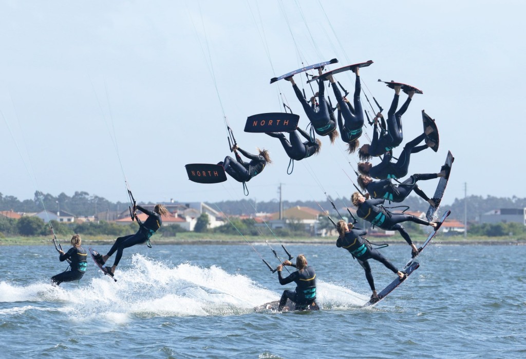 If we were to set one goal for this moment, it’s undeniably the need for a slow controlled back roll. So often repeated, so stunningly important and yet so unnatural. However, once nailed it’s with you for eternity - worth every ounce of effort and drop of sweat. To achieve a slow rotation, you need to use all your board to carve up towards the wind during take-off, overcoming the urge to lean back and pivot through the wind off the tail. This means keeping some weight on your front foot whilst holding the back leg solid, continually resisting against the edge and fighting the temptation to soften the back leg and roll back into the rotation. You can see that at the moment of lift off Christian is still on his edge, pushing the board away with his back leg, looking forwards whilst carving up. Notice how his shoulders and hips are parallel with the board. They’re not open and twisting into the wind. This is key to the slow rotation. Other than that, he’s pulling the bar in a tad and has stopped sending the kite.