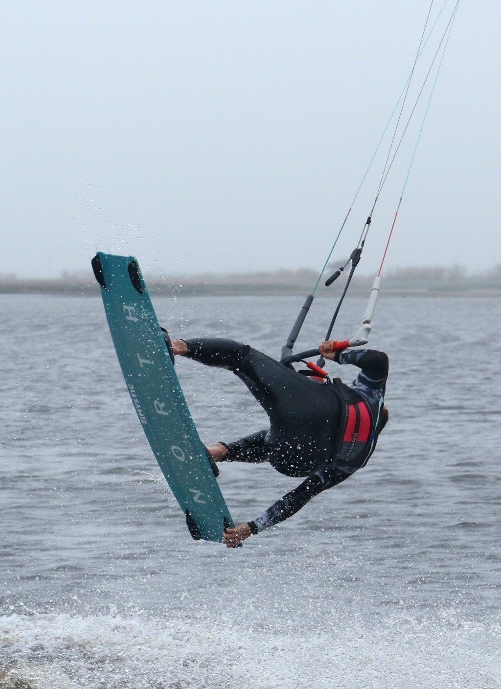 Woohoo! This is often one of the first popped grabs that kiters nail. It fits so well with a back roll to toeside, as you actually have a tad more time. It even helps the switch to toeside, and can be boned out as you get more and more confident. It’ an absolutely phenomenal feeling to stick a grab onto anything popped, and a cheeky tickle is claimable. So, go on, give you back roll to toeside a USP with this front hand grab.