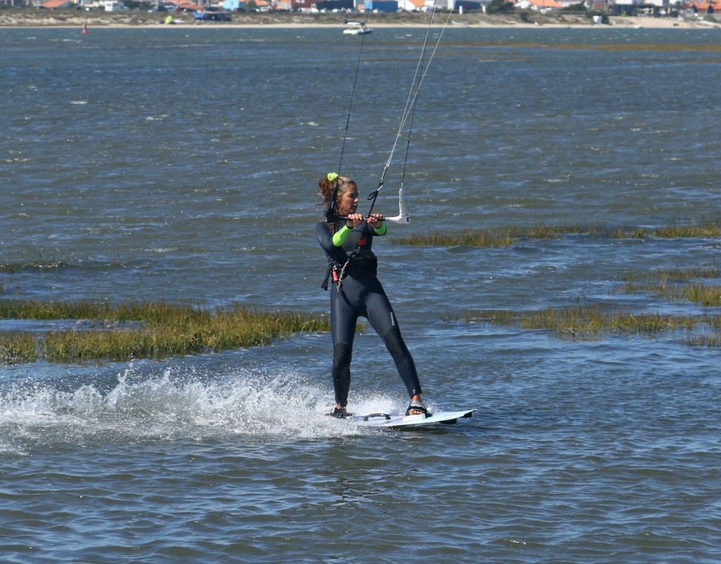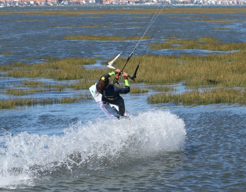 In an ideal world, your aim is to land tail first on a flat (not edging) board pointing slightly off the wind. This is your softest option. The reality of this is connected 100% to your approach and kite position. As long as you bore away into the move, you will bear away out of the move. And if you managed not to move your kite up to 12 o’clock, the kite will keep moving forwards and help you achieve this. As Karine lands tail first and flat, she is over the board and as such she can absorb the impact. Once back in control, you can turn up back onto your edge, untwist your bar, and set up for another one! 🙂