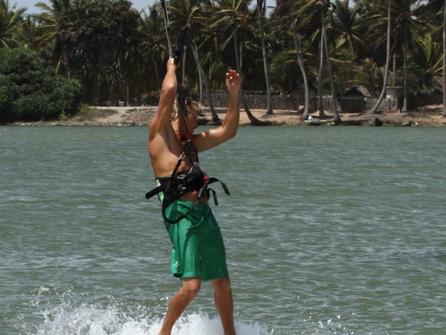 Your main concern will be falling in backwards as you try to Ole. If there is still tension on the lines and you can’t get the bar past your head it can be that your kite is too low, so lift it, or possibly you didn’t have enough speed or didn’t carve suddenly enough down towards the kite and therefore never released the tension from the lines.