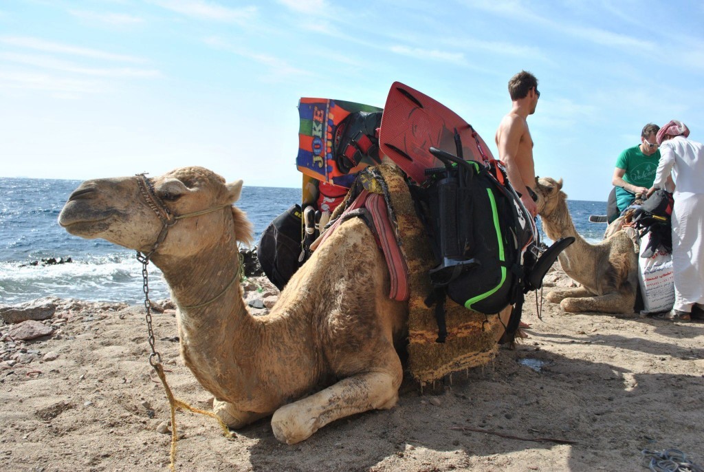 THIS IS AN UNFORGETTABLE EXPERIENCE! This is a magical kite spot, and many people have said this is one of their favourite kite spots in the world. Stay in little huts by the water's edge and wake up to kite on mirror flat water at the top of the bay. The only way to get to this magical lagoon is by camel from Blue Hole. From here you will load the camels with your equipment and you can either ride a camel as well or walk the 2hr hike alongside the shore (trust me - walking is a lot more comfortable!)